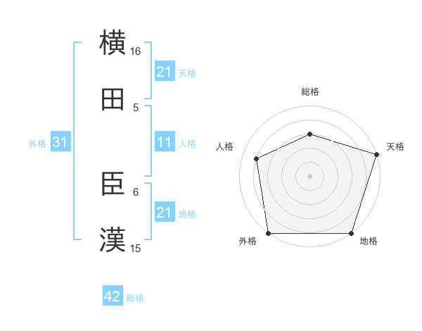 横田 臣漢さんの天格は21画の5点!
