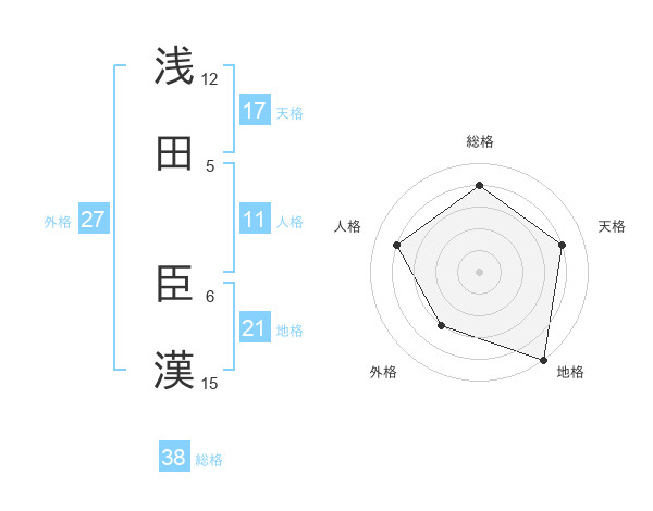 浅田 臣漢さんを姓名の画数から五運を鑑定