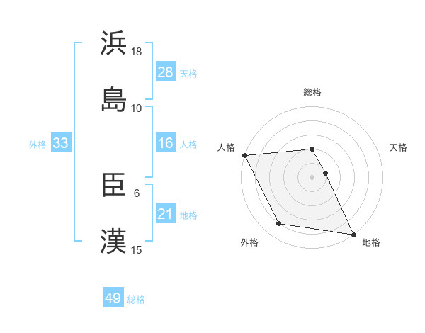 浜島 臣漢さんの外格は33画の4点