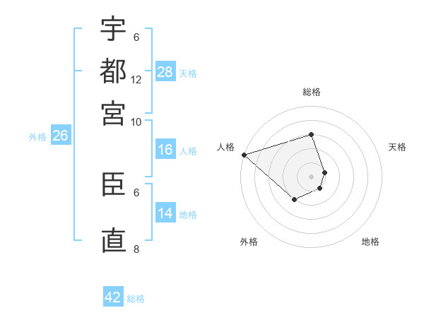 宇都宮 臣直さんを姓名の画数から五運を鑑定
