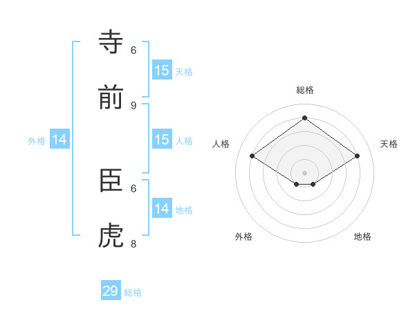寺前 臣虎さんを姓名の画数から五運を鑑定