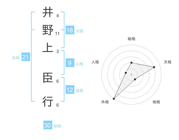 井野上 臣行さんを姓名の画数から五運を鑑定