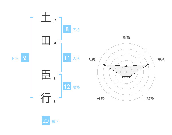 土田 臣行さんの総格は20画の1点
