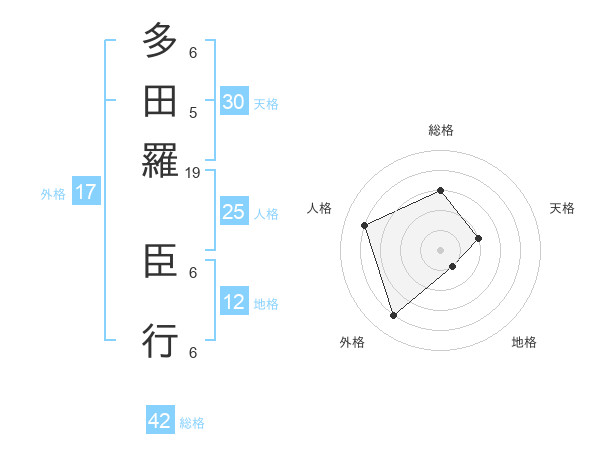 多田羅 臣行さんを姓名の画数から五運を鑑定