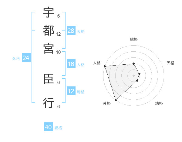 宇都宮 臣行さんの外格は24画の5点!