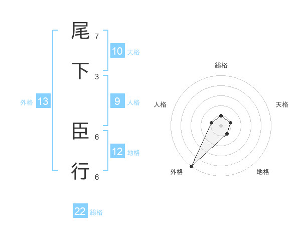 尾下 臣行さんを姓名の画数から五運を鑑定