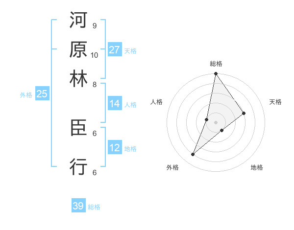 河原林 臣行さんを姓名の画数から五運を鑑定