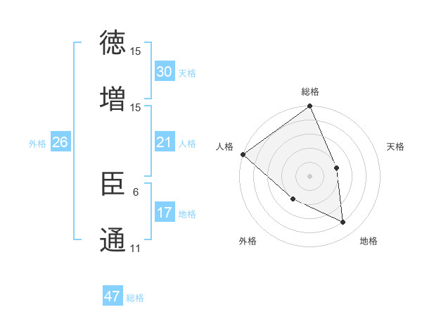 徳増 臣通さんを姓名の画数から五運を鑑定