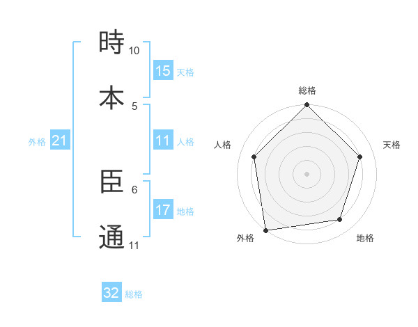 時本 臣通さんを姓名の画数から五運を鑑定