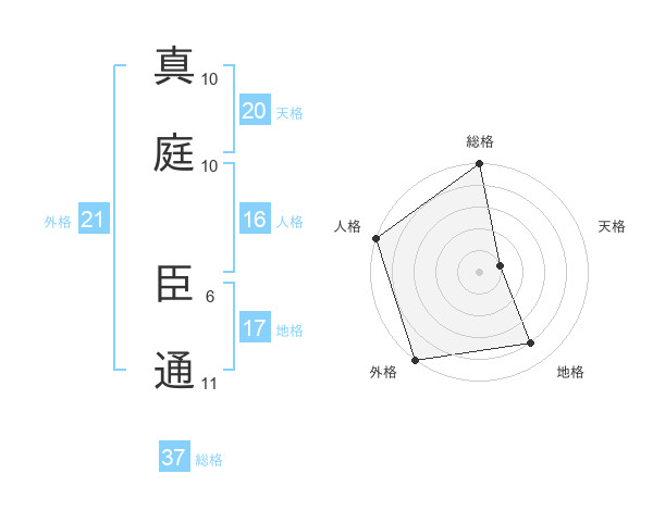 真庭 臣通さんの外格は21画の5点!