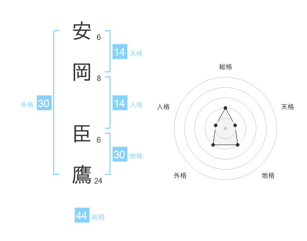 安岡 臣鷹さんを姓名の画数から五運を鑑定