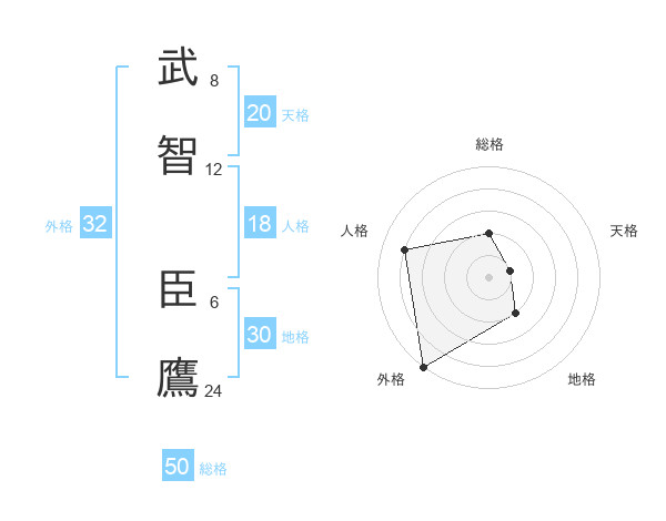 武智 臣鷹さんの総格は50画の2点!