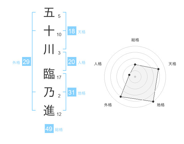 五十川 臨乃進さんを姓名の画数から五運を鑑定