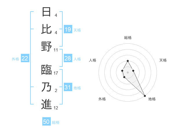 日比野 臨乃進さんを姓名の画数から五運を鑑定