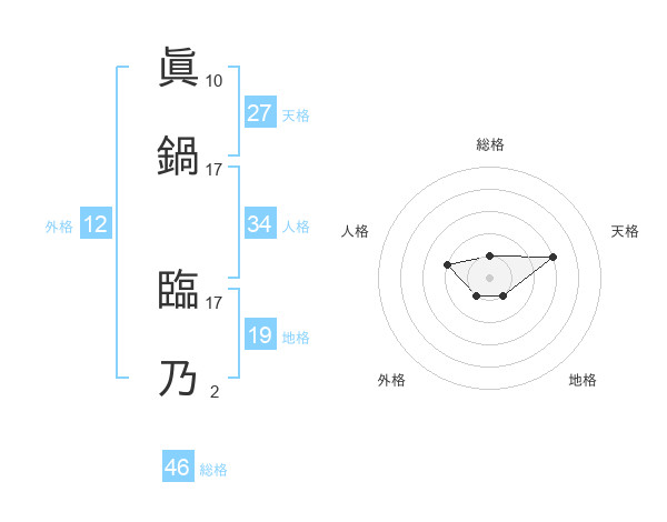 眞鍋 臨乃さんを姓名の画数から五運を鑑定