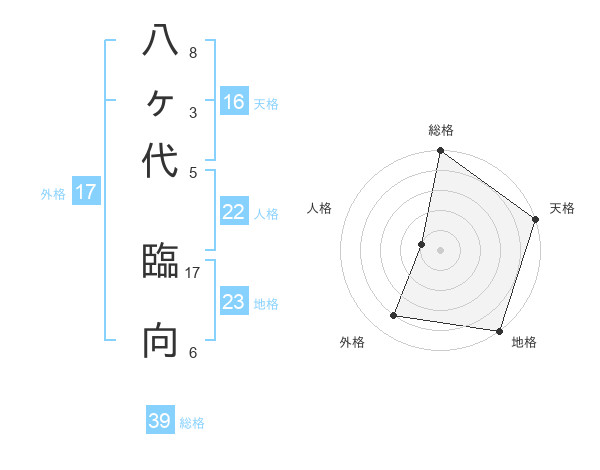 八ヶ代 臨向さんの総格は39画の5点!