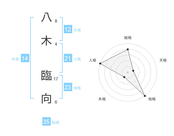 八木 臨向さんを姓名の画数から五運を鑑定