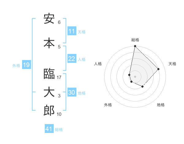 安本 臨大郎さんを姓名の画数から五運を鑑定
