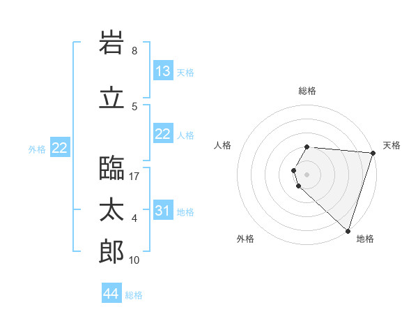 岩立 臨太郎さんの総格は44画の2点!