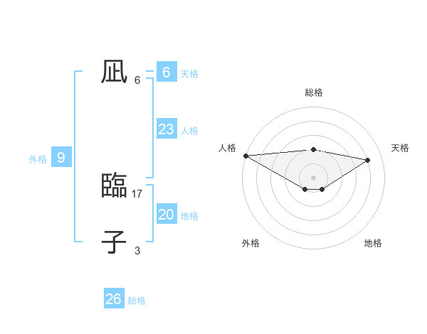 凪 臨子さんを姓名の画数から五運を鑑定