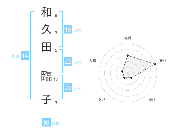 和久田 臨子さんを姓名の画数から五運を鑑定
