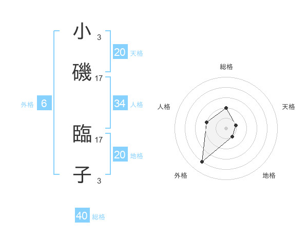 小磯 臨子さんを姓名の画数から五運を鑑定
