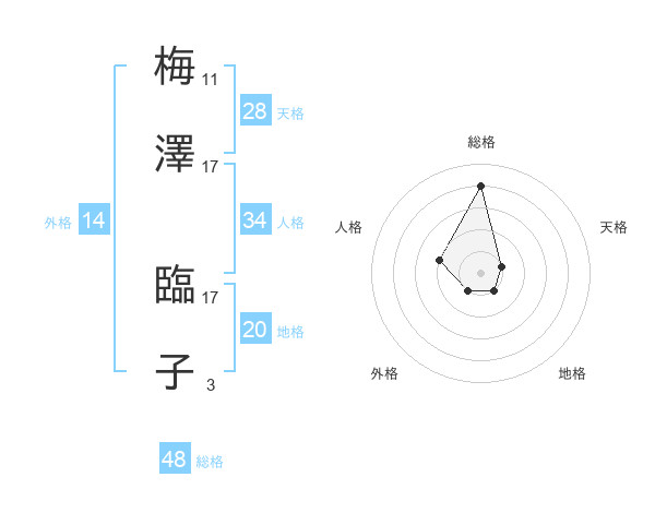 梅澤 臨子さんを姓名の画数から五運を鑑定