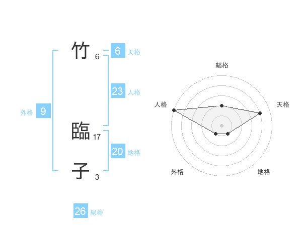 竹 臨子さんの総格は26画の2点!
