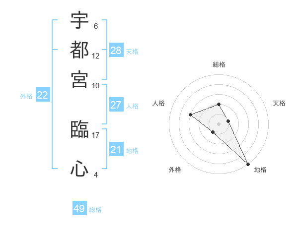 宇都宮 臨心さんの総格は49画の2点!