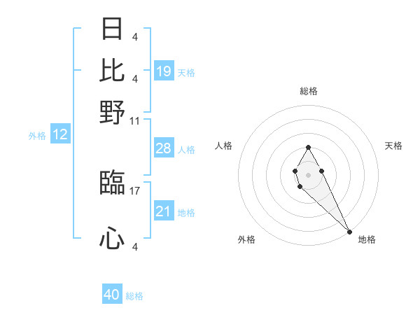 日比野 臨心さんの総格は40画の2点!