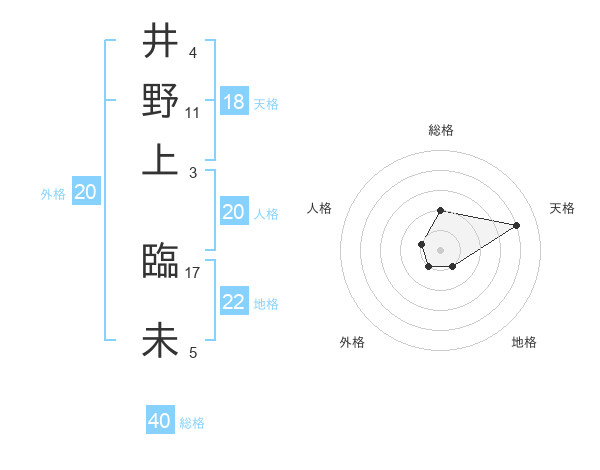 井野上 臨未さんの天格は18画の4点!