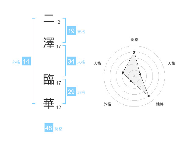 二澤 臨華さんの総格は48画の4点!