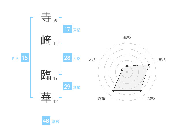 寺﨑 臨華さんを姓名の画数から五運を鑑定