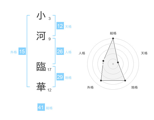 小河 臨華さんの総格は41画の5点!
