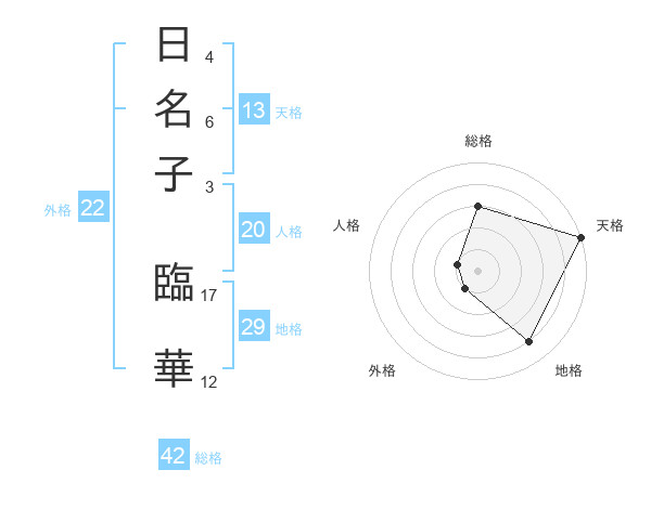 日名子 臨華さんを姓名の画数から五運を鑑定