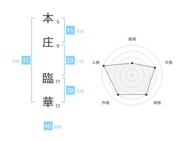 本庄 臨華さんの外格は17画の4点!