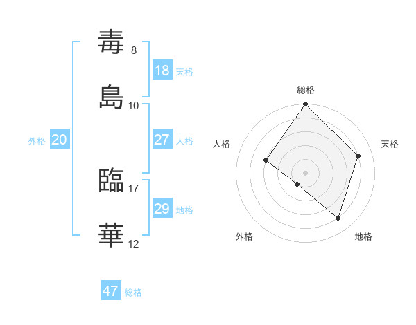 毒島 臨華さんを姓名の画数から五運を鑑定
