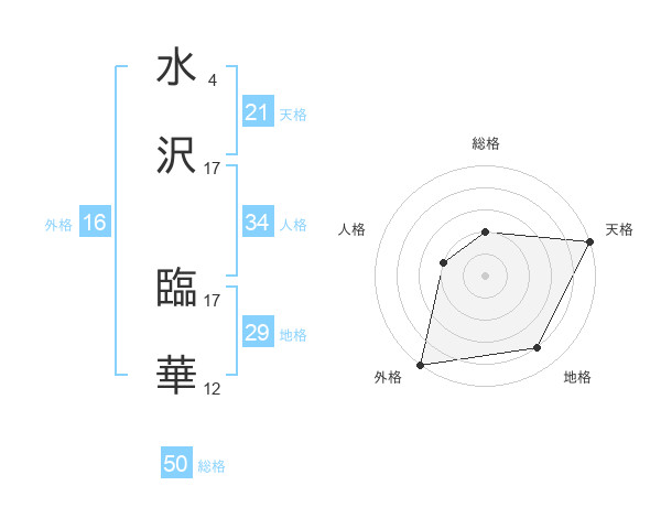 水沢 臨華さんを姓名の画数から五運を鑑定