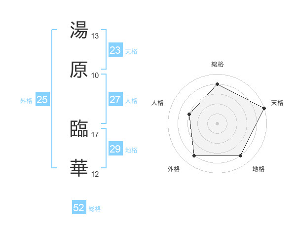湯原 臨華さんの総格は52画の4点!