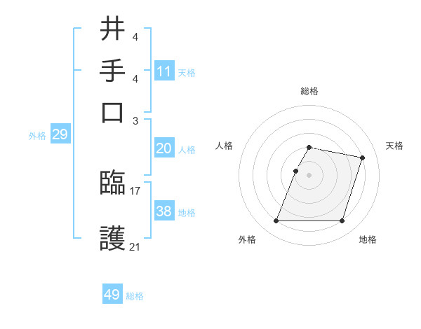 井手口 臨護さんの総格は49画の2点!