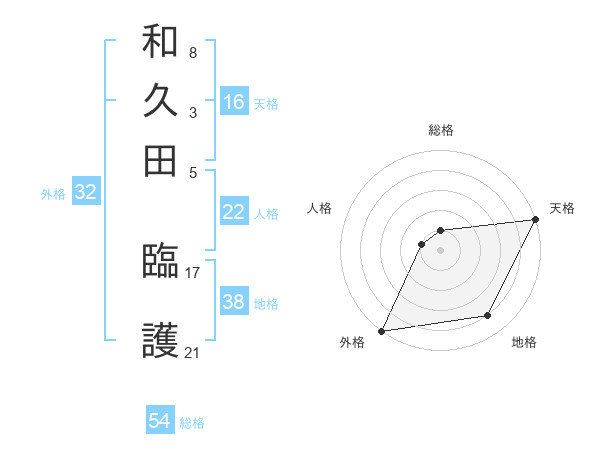 和久田 臨護さんを姓名の画数から五運を鑑定