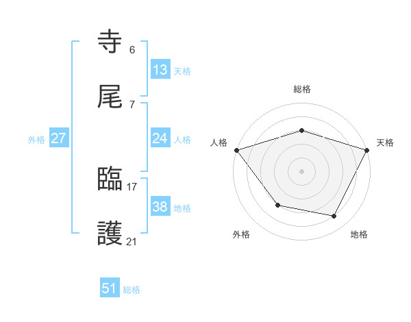 寺尾 臨護さんの総格は51画の3点!