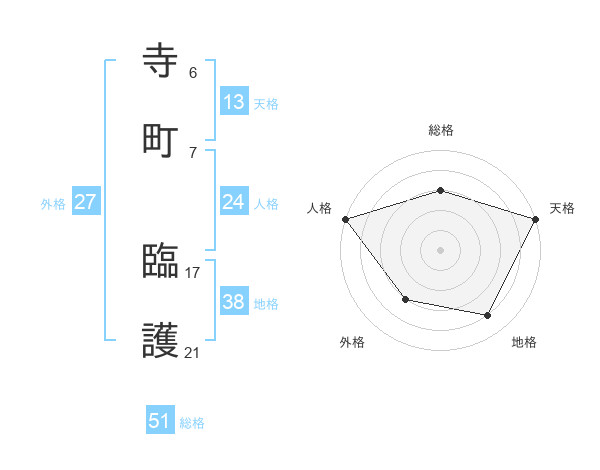 寺町 臨護さんを姓名の画数から五運を鑑定