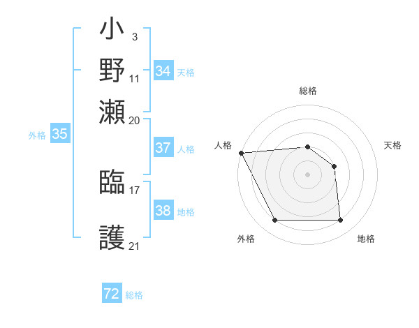 小野瀬 臨護さんを姓名の画数から五運を鑑定