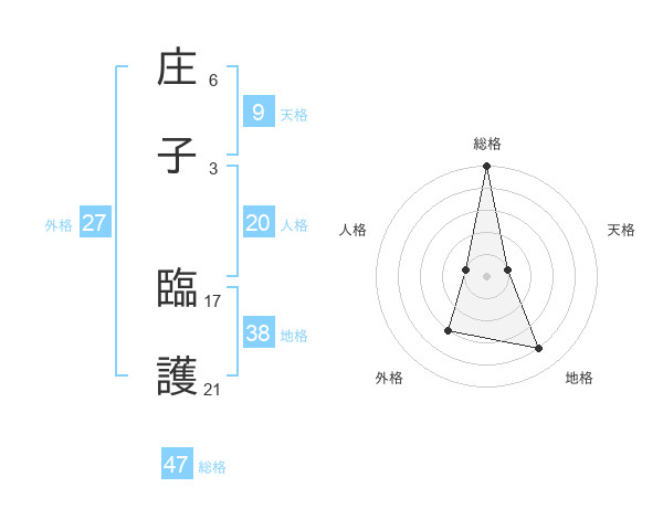 庄子 臨護さんの総格は47画の5点!