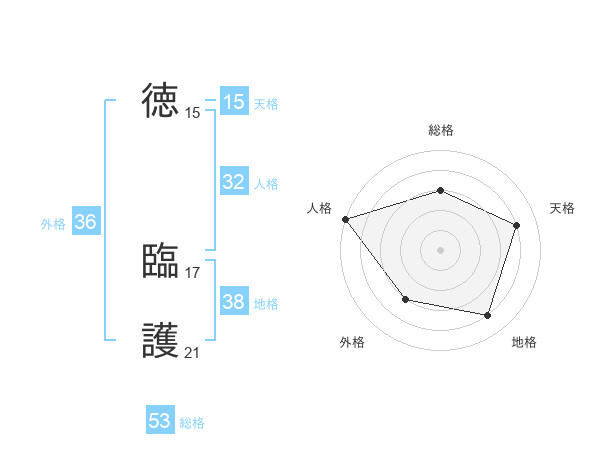 徳 臨護さんの総格は53画の3点!