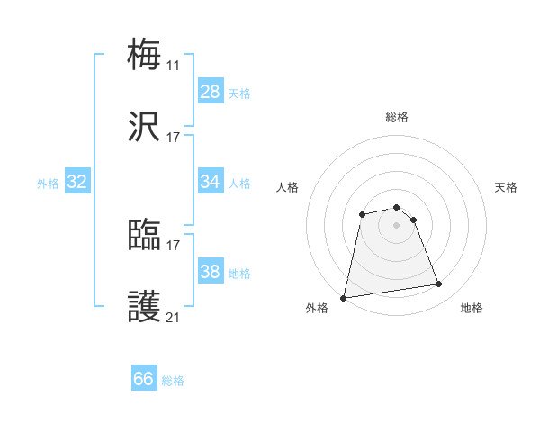 梅沢 臨護さんを姓名の画数から五運を鑑定