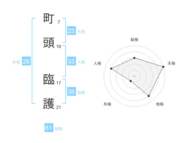 町頭 臨護さんの総格は61画の3点!