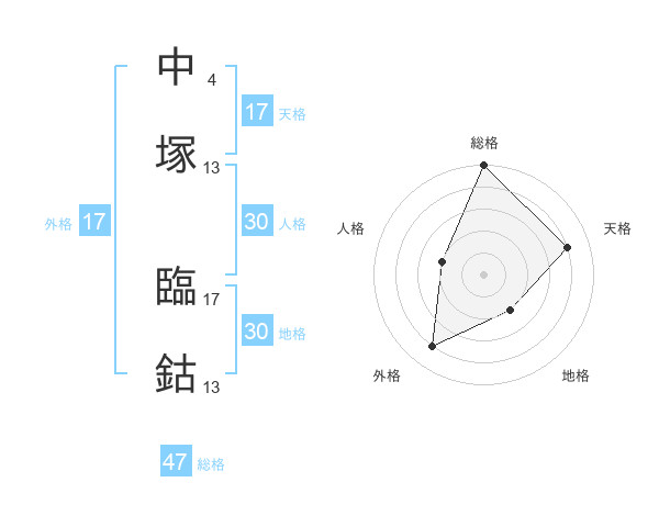 中塚 臨鈷さんを姓名の画数から五運を鑑定
