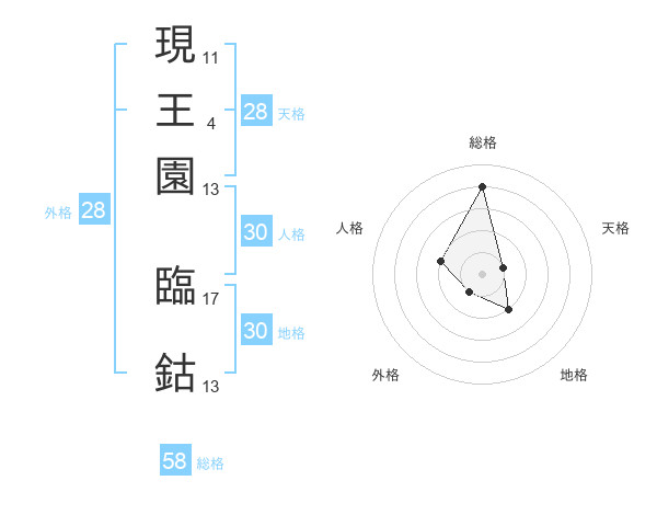 現王園 臨鈷さんの総格は58画の4点!